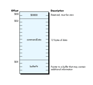 specific to each call. Finally, the command data parameter list ends with a long pointer