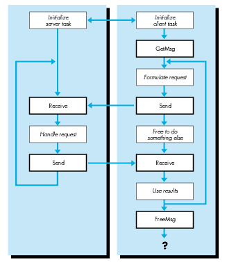Register_Task() Receive() primitive and waits for messages. In the Receive() is issued with a timeout parameter.Register_Task() routine. The TokenTalk task searches for the LLC task by Lookup_Task(). It then waits for messages from the Macintosh to