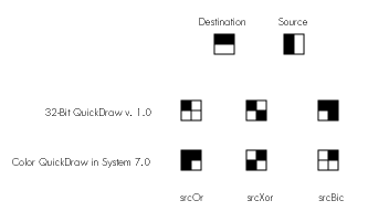 notOr, notXor, and notBic. For each bit in the source bitmap to be drawn, QuickDraw
