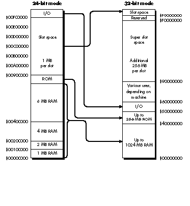 Figure 8Macintosh II Memory Map in 24-Bit and 32-Bit Mode