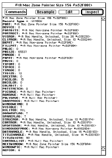 Inspector on any value in the Backtrace window by double-clicking on that value. If