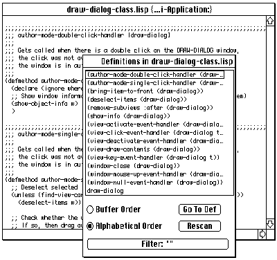 interfaces. The MCL environment includes a syntax-oriented text editor for Lisp; a