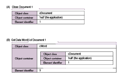 objects within an application. The application of Apple events to Apple event objects is