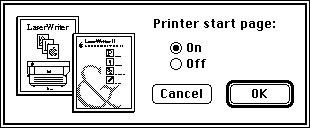 PostScript printers to decide whether or not the printer produces a "start page" when