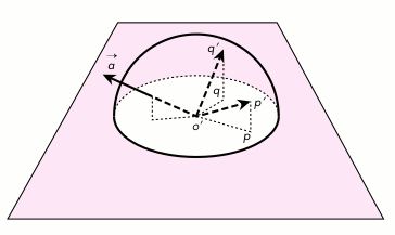 as moving from pointp' to pointq' on the surface of the imaginary hemisphere. We