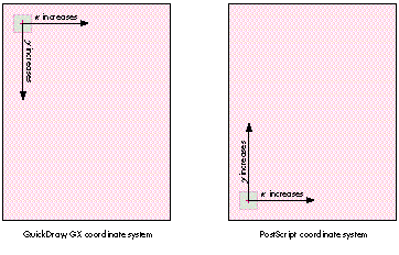 Some differences between the QuickDraw GX and PostScript graphics models include