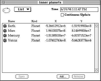 planets at a specified time. A sublist on one of the record information pages lists the