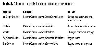 The SetOutput method is used by the Sound Manager to tell your component what kind of