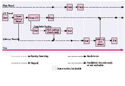 ready the I/O thread. Then theI/O thread awakes and continues running as if nothing