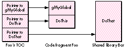 gMyGlobal, and imports a function DoThat from the shared library Bar. The TOC will