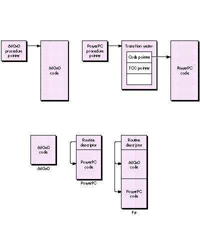 resource data in memory and calls the PowerPC code via a UniversalProcPtr embedded