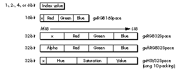 packing schemes, but QuickDraw GX supports a whole family of color spaces and