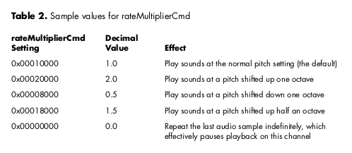note value, and the rateCmd command gives you limited control over the pitch of the