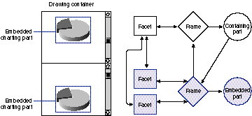 A containing part and its embedded part share a single frame object, which they use to