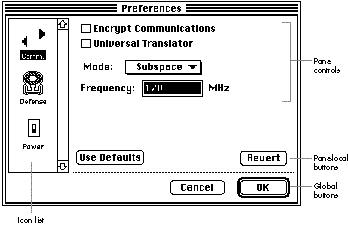 element of the Macintosh user interface. Like simple dialogs, multipane dialogs can be