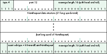 encapsulates the first few fields of the old NoteRequest structure and splits the first of