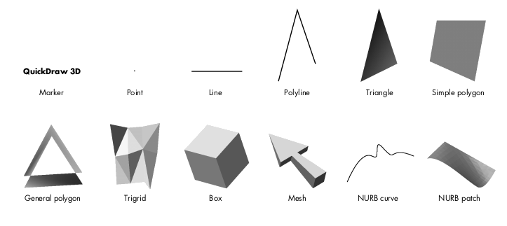 QuickDraw 3D provides a rich set of primitive geometric types that you use to define