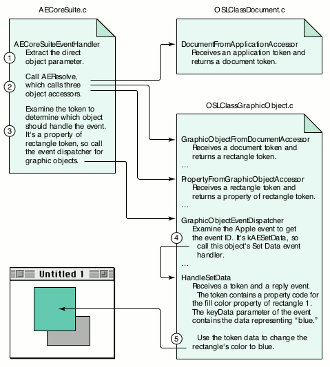 event and a reply Apple event. Your event handlers extract parameters from the Apple
