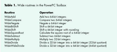 "wide" Toolbox routines. These routines perform addition, subtraction, multiplication,