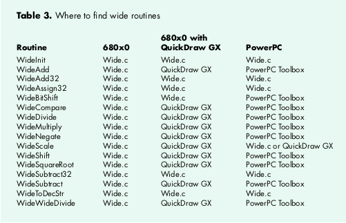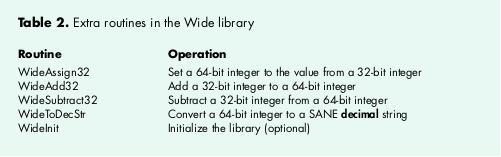 In the header file FixMath.h, the routines listed in Table 1 are defined for 64-bit math