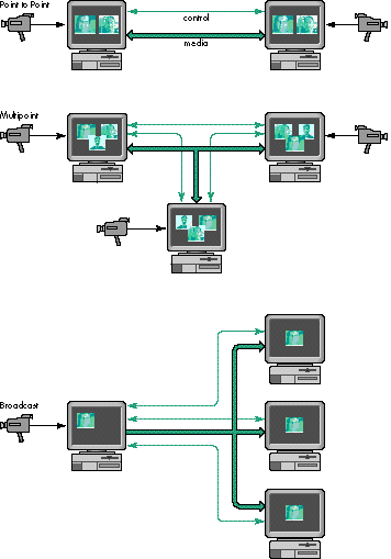 two-way conferences; multipoint, for virtual meetings and groupware applications; or