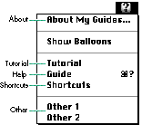 requested with the helpType parameter of the <Help Menu> command (see Apple Guide